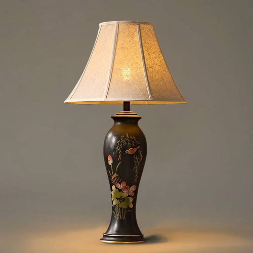 Rustic Ceramic Table Lamp with Linen Shade – Large Bedside Lighting -